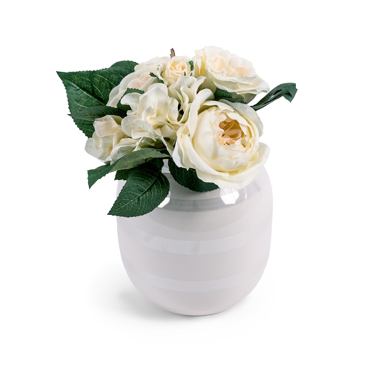 [description] => Omaggio Medium Ceramic Vase White/Pearl 8" Tall