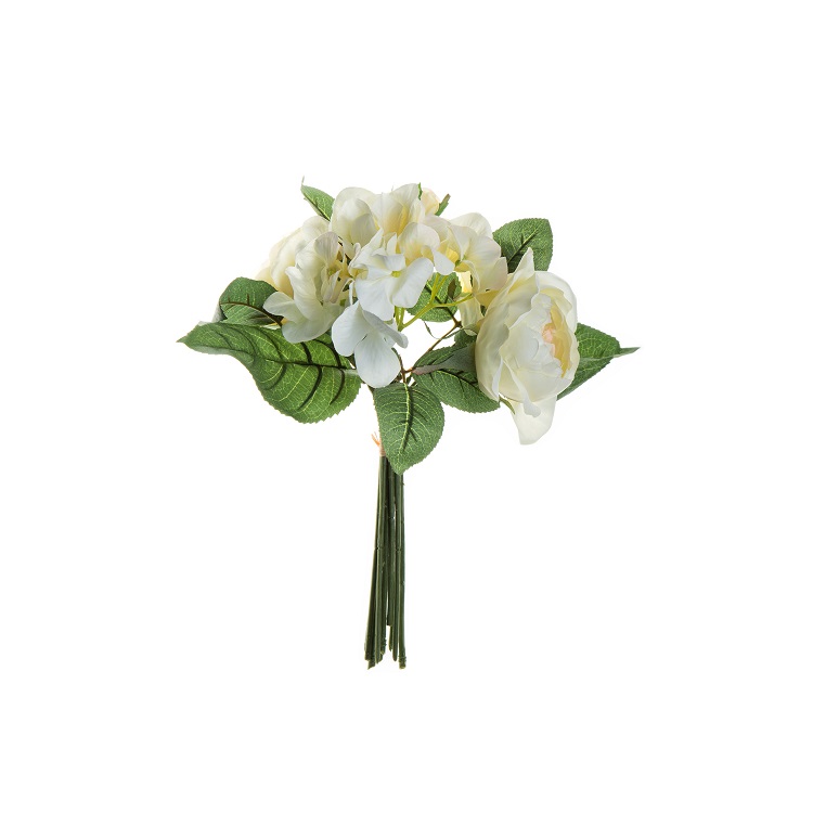 [0] => White hydrangea with white peonies floral bouquet.