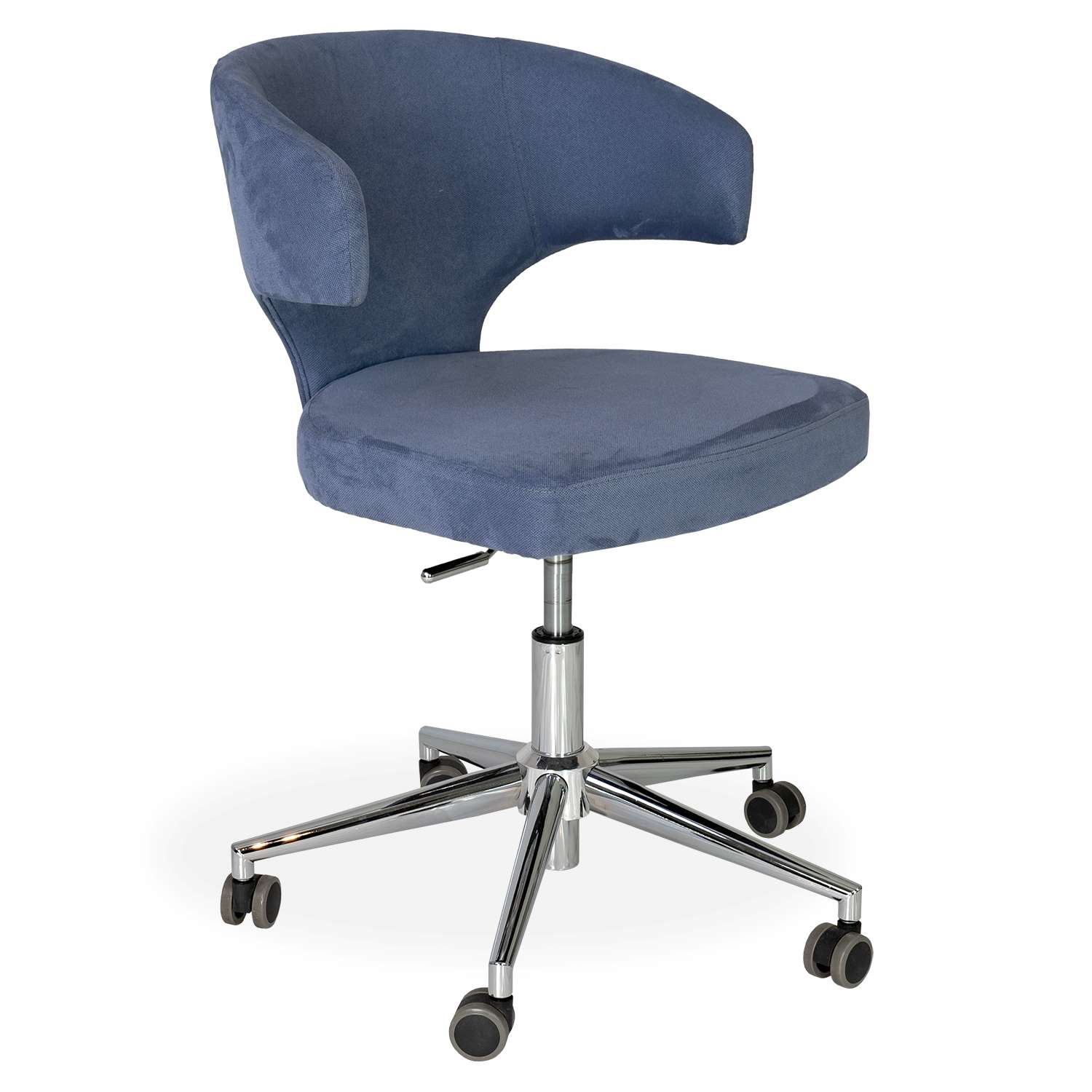 The Wing Chair, made in Italy, features light blue fabric upholstery and a chrome base on castors. The curved structure of this chair ensures your long-lasting comfort, with the open arms of the chair forming "wings." An ergonomic addition to your living space.