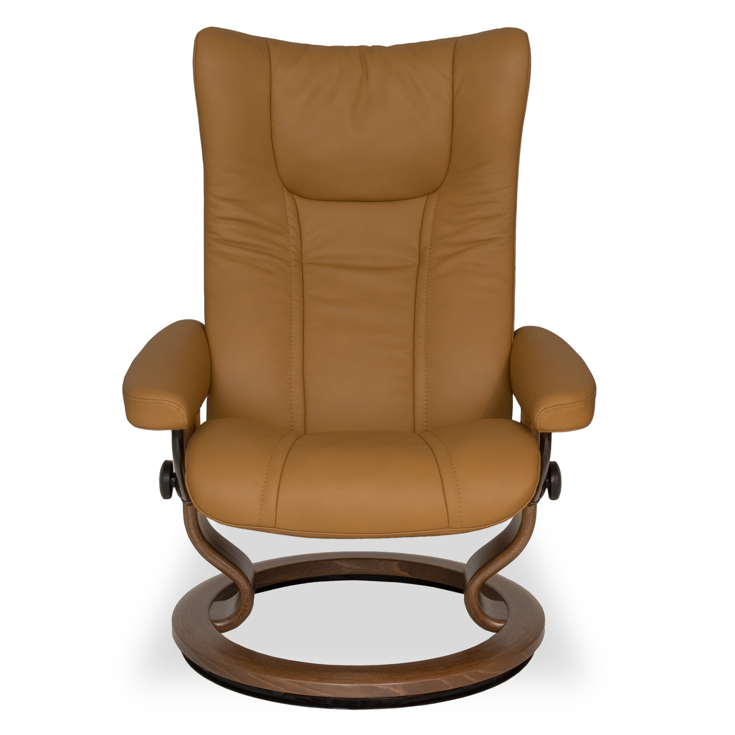 The Wing chair and ottoman by Ekornes of Norway is one of the first and most popular Stressless® models, debuting in 1994. Though the design is timeless, the chair features cutting-edge comfort technology, including the Plus™ and Glide systems that continuously support the head and lower back, while adjusting the reclining angle based on shifts of the body. Available with a walnut-finished Classic base and leather upholstery, this chair has an iconic "winged" headrest and matching stitching that creates crisp lines in the leather.