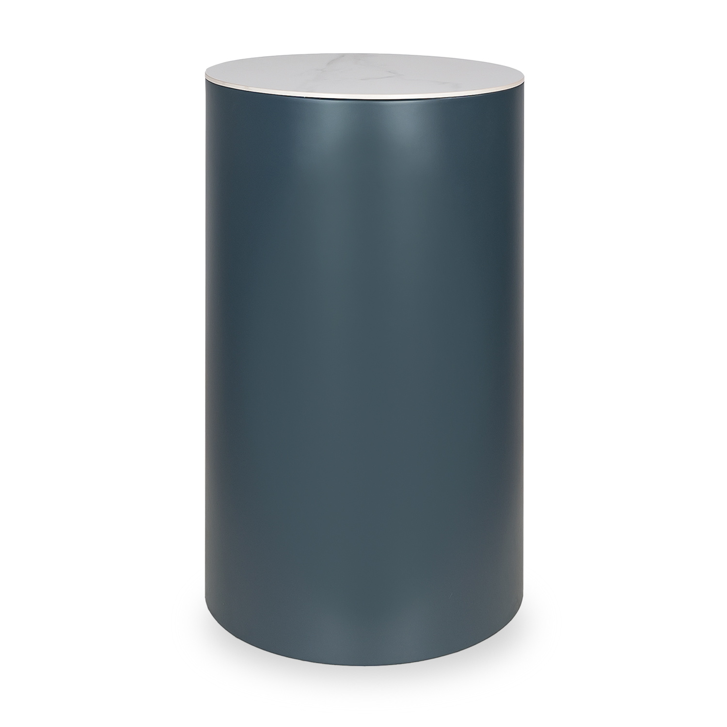 The 39" Winter Grey Podium is a sleek, modern display pedestal ideal for showing off a treasured sculpture, vase, bowl, plant pot, or more. This cylindrical podium features a base with a blue-grey finish that contrasts with the off-white marble-like look of the Carrara ceramic top. Pair this podium with its shorter 31.5" companion for an elegantly coordinated display setup.