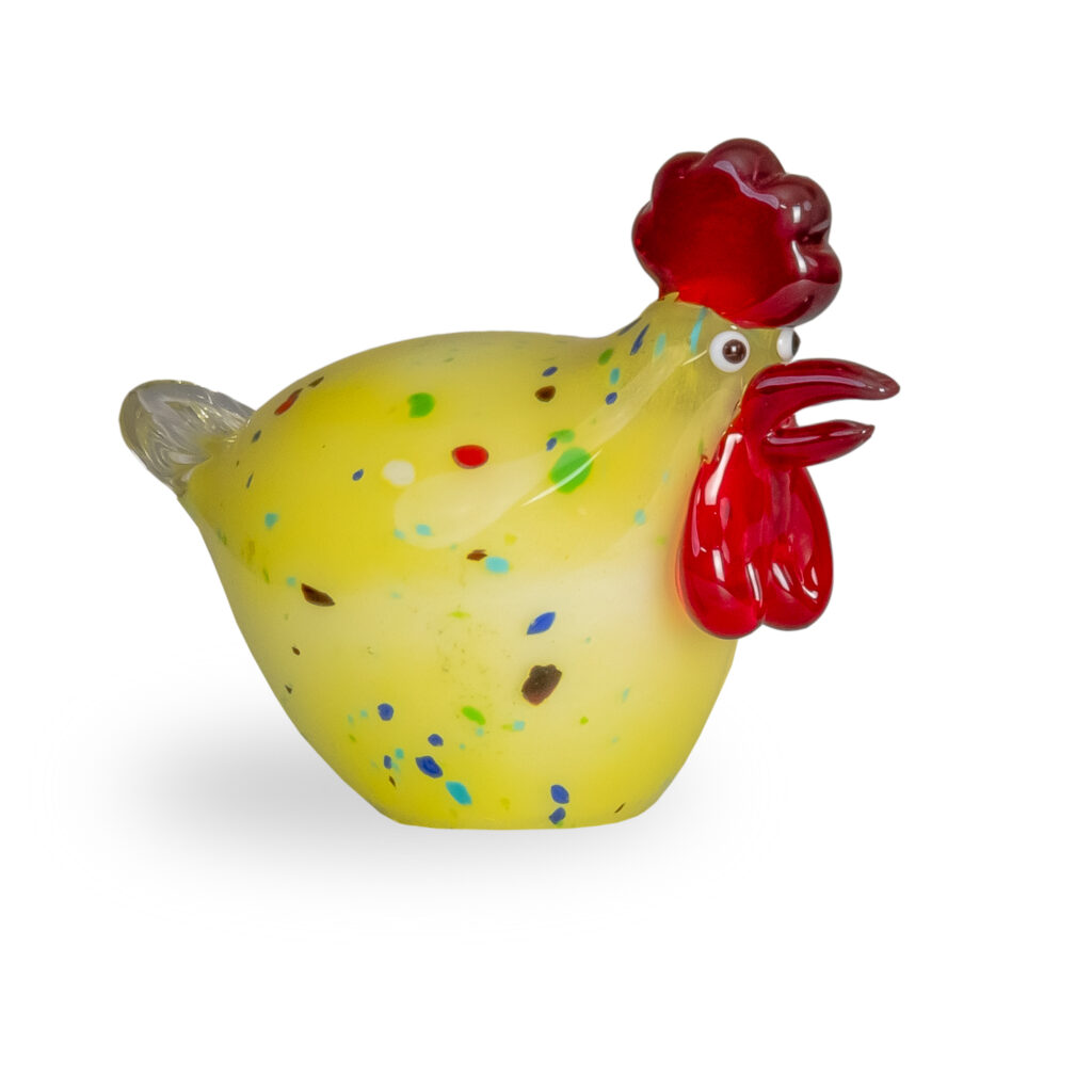 The Large Yellow Chicken is an ideal companion for brightening up your dining table, sideboard or display cabinet. This chicken has a glossy yellow body with multicolored specks of green, blue, red, and black; plus a beak, comb, and wattles in bright red. Wherever you place it, the Large Yellow Chicken will add a rustic charm that brings delight to young and old.