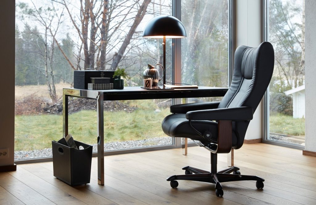 The Stressless® Wing Chair comes in three sizes, dozens of colors, and a variety of custom base options depending on the type of comfort or style you’re seeking. Choose a Classic base for a more traditional look, a Cross base for a sleeker and more modern aesthetic, or a Power chair that lets you recline at the touch of a button. The Signature base offers advanced comfort technology in its BalanceAdapt™ function, which lets the chair lightly rock in response to subtle movements of your body. If you want to bring ergonomic comfort to your workday, the Stressless® Wing is also available with an office chair base. With its range of customization options, there’s a Stressless® Wing for every body and every space.